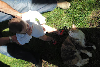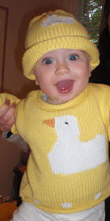 For months Charlie has thought that people sneezing or pretending to sneeze are hilarious. So we call him Mr. Achoo. And now we sing him this song. Mr. Achoo also loves dinner and prefers to eat it standing up in his high chair.
