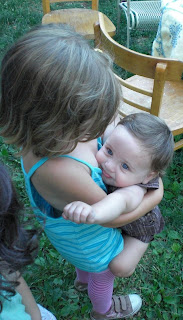 C loves his new friend, Baby Felix (and dad Hair Dude).