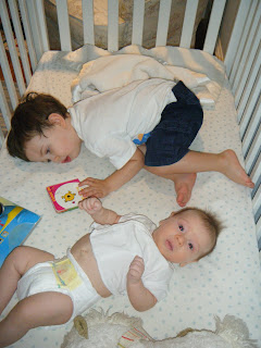 Tonight Charlie was in the bathtub and I was sitting on the floor next to it with Teddy on my lap. Teddy was watching Charlie very intently when Charlie looked over and started smiling. Teddy got really excited and started grinning and then Charlie got excited and started babbling at Teddy and Teddy started cooing back and they were really interacting and having fun with each other for the first time. It gave me the most wonderful feeling ever. I started crying.