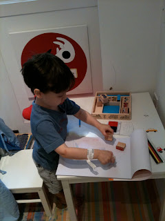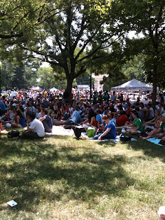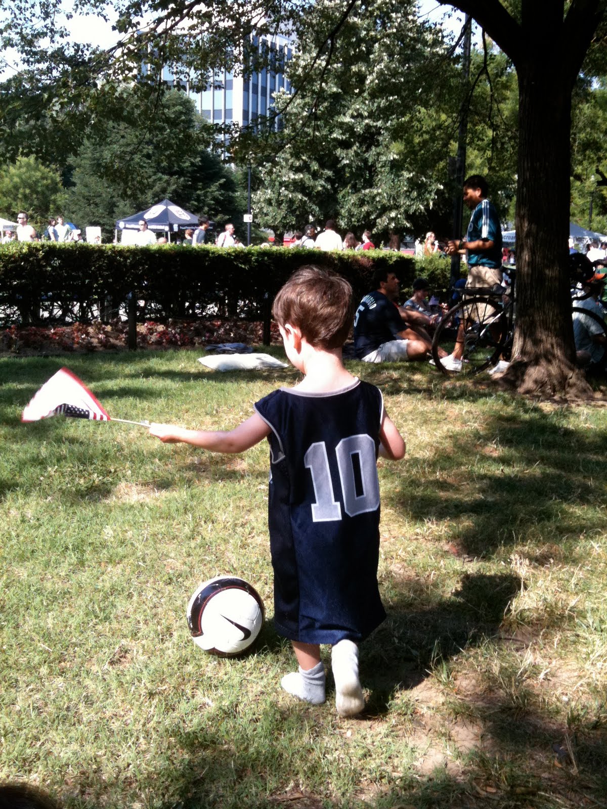 Charlie, Teddy, Huck and I went to Dupont Circle at 8 this morning for the World Cup screening and celebration that was going on. Charlie was so excited that everyone else was excited about soccer. He was yelling and cheering, dancing to music, kicking a soccer ball around, playing with the other kids there. Teddy tried to eat flowers and crawl into the basket under the stroller.