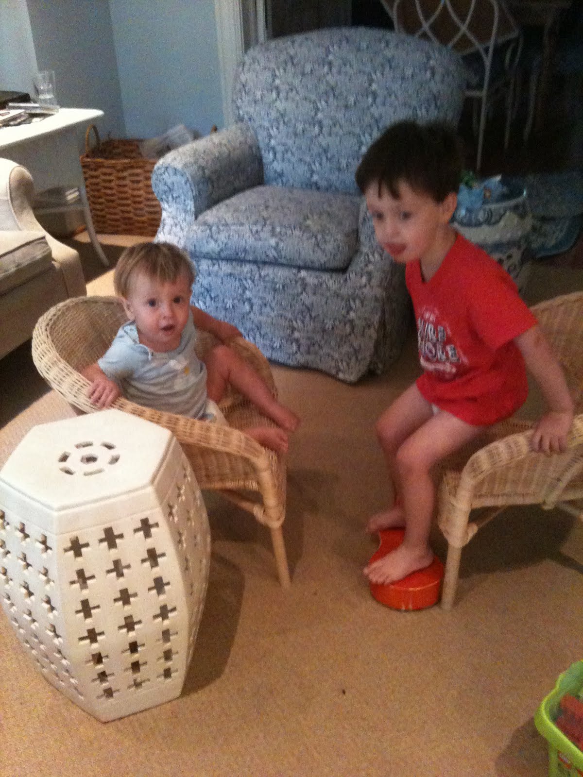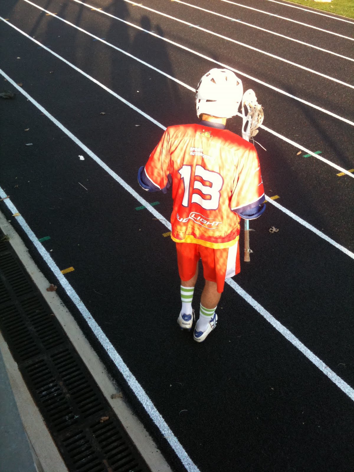 Tonight C & T went to see MJ play lacrosse. They loved it. C kept saying he was going to to “play men’s luqwoss college!” On the way home he also said “Play luqwoss Monday you sit on seats Teddy in stroller watch me play luqwoss. On Monday.” The he seemed to invent some lacrosse chips and when MJ asked him to describe them he said “After game eat chips. Put hand in bag take one chip put in mouth!”
