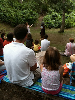 Today we took Charlie to see a theater troupe, the Fabulists, perform. He LOVE it. There was lots of audience participation (like the prince character asked the kids “What do I say when I want to talk to girls?” and he kids yelled out say: “Hi,” “Ask her name,” “Invite her for dinner,” “Make her lunch,” “Give her dessert,” “Play tag,” “Let her use your internet.” Charlie jumped in and helped act like a monster during one scene and hen uninvited went over the “orchestra’ sat down and started keeping the beat with a drunk stick and playing a cymbal.