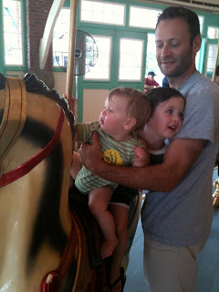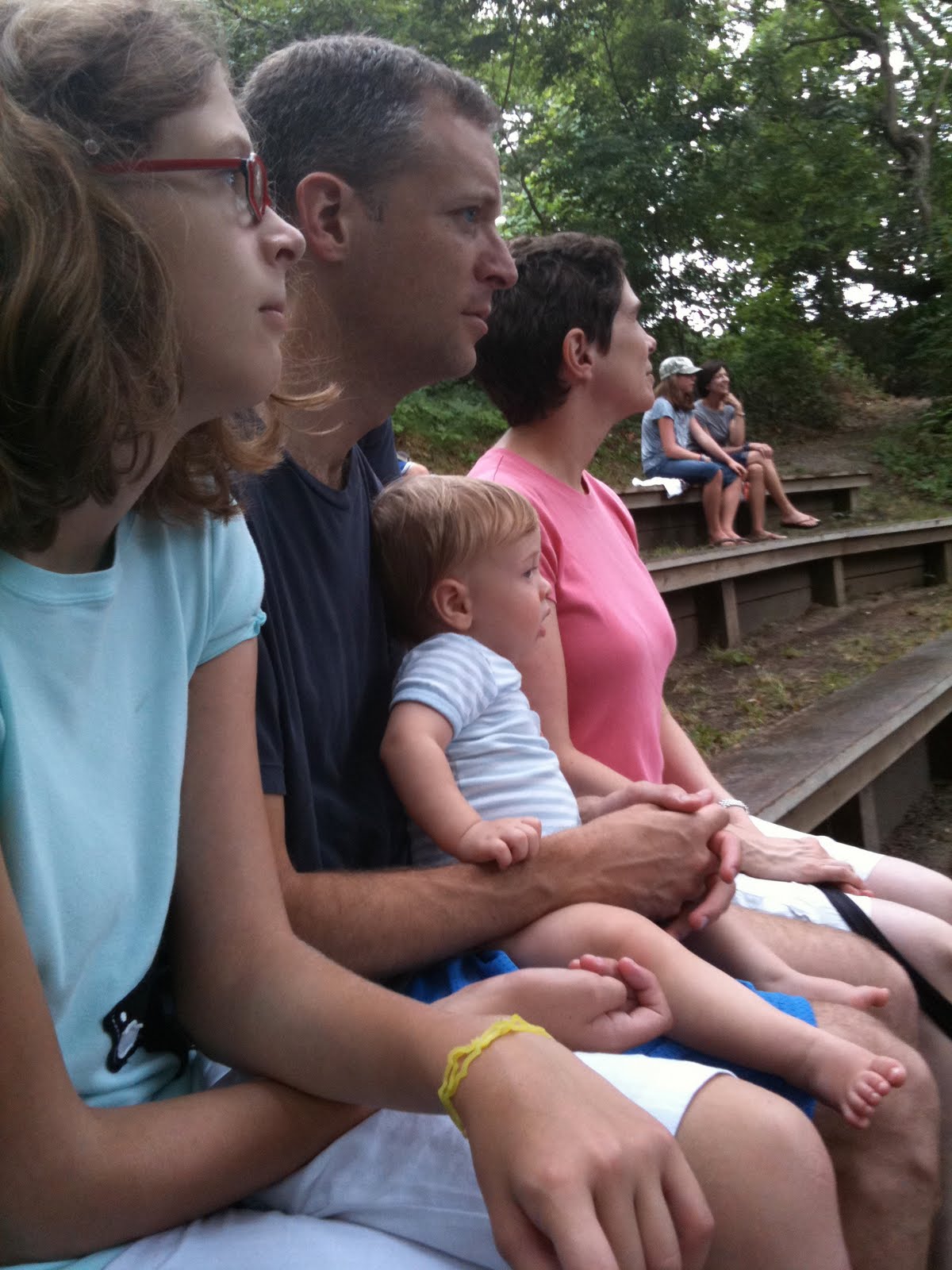 Teddy really likes to say “Hi” to people by having them hold him. He will reach out to get the person to pick him up and then after about 30 seconds or so reach back to have me take him back. It’s not everyone and not strangers (though he did do it to another woman at an outdoor concert at Featherstone on the Vineyard last week), but usually people he has seen a few times before. Like today in the park he had Coach John do it and then a friend of mine from Blue Igloo. So friendly.
