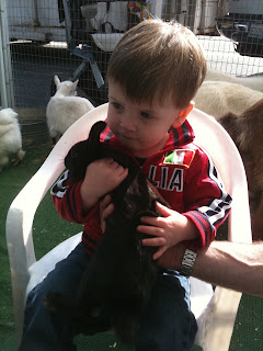 Two weeks ago we were in LA. Charlie and Teddy loved staying at Isabel’s (and they adored Isabel and Nico), watching surfers, playing on the beach, drumming at the Remo drum warehouse, going to the Getty Villa (where C declared “I hate jasmine”), and seeing Jenny, Peter and Alice. At the farmer’s market they got to ride ponies and Teddy almost lost his mind with excitement over 10 baby bunnies he could pet. Depite both throwing up on me in the plane they were amazing travelers.