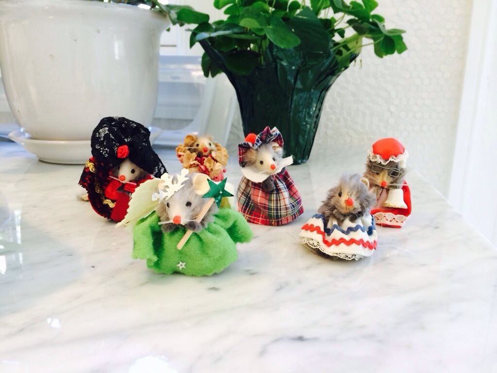 When I was little I adored-I mean really adored-these Little Mouse House mice. On Saturdays my father would take me on errands to the post office, dry cleaners, framers, store to get something for that evening’s party, whatever it might be and as a treat sometimes he’d take me to get one of these mice. I had so many and they make me think of my father’so sweetness to me and how I loved going out with him to do errands*.