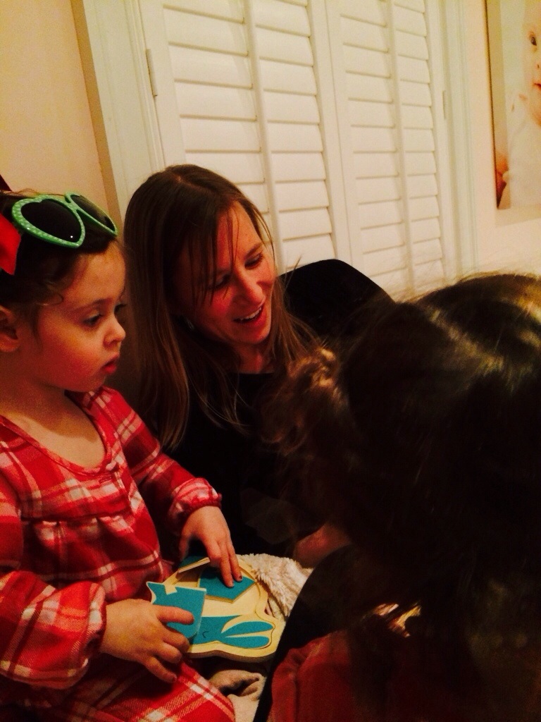 Karen came to visit from Dublin this weekend which set off godmother mania. The girls were so thrills when she arrived and came into their room at bedtime bearing gifts of puzzles and sunglasses. Teddy was so excited when Carol came to read to him. Charlie was excited he got to stay up late.