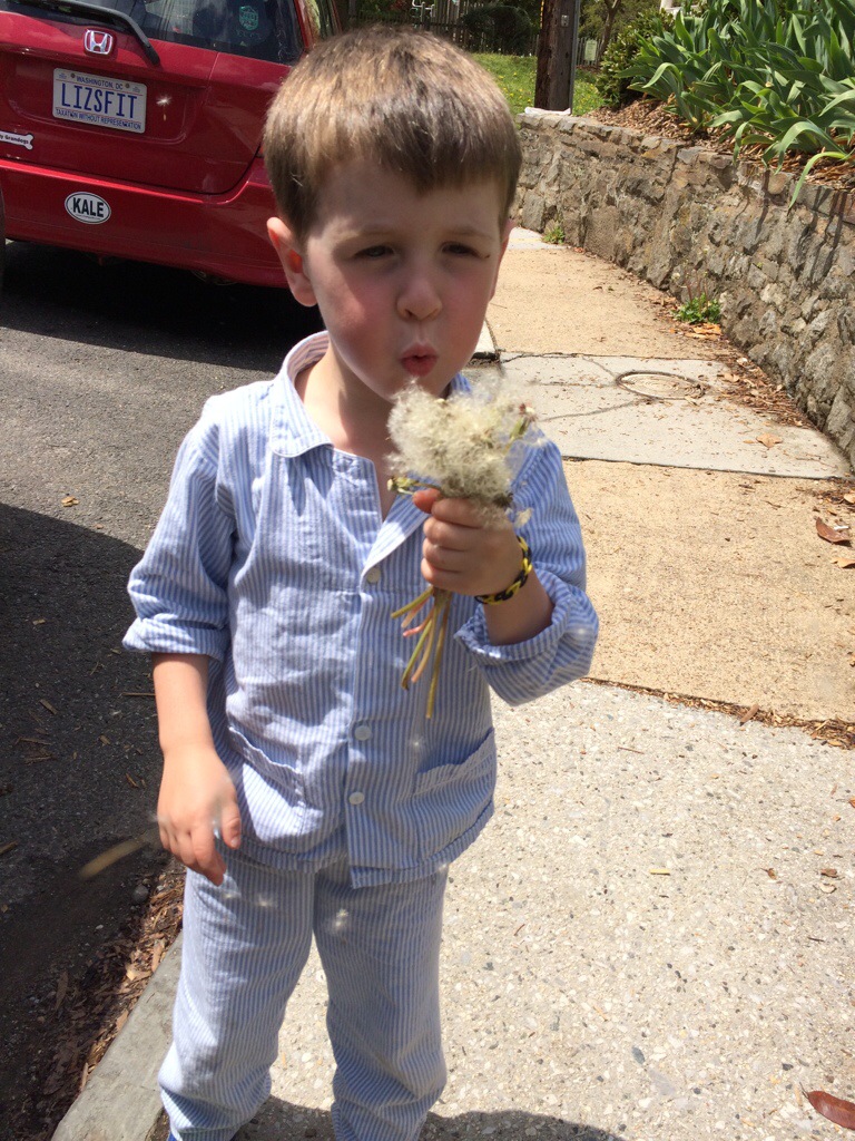 Teddy picked a lovely dandelion bouquet.