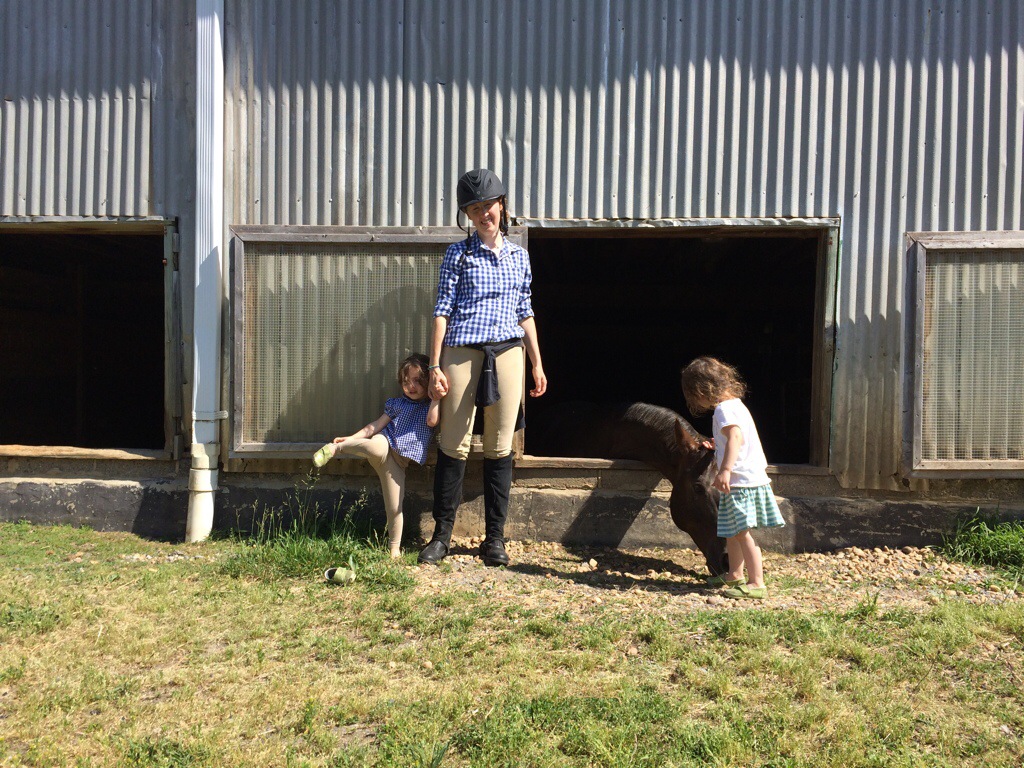 Such a fun weekend with swimming, horseback riding , pony rides, biking, dinner out, Dr Croog and her family for brunch testers a and the Toomeys for dinner and some soccer last night. The best part was laying around in the grass at BK today and lounging in a tree while the kids climbed around it. I did a flip over a branch so they could see how. It was totally blissful. Scottie started screaming and having a meltdown followed by Nelly but it was fortunate because I was really about to feel proud about being being able to be totally peaceful and “zen” about it and actually breathe through it and gain a sense of accomplishment for calming them. Bob has taught me so well. At one point Teddy was sticking sunglasses in my nose, Charlie was crushing a berry on my arm, and both girls were hanging on me crying. I just breathed, focused on trying to get them to breathe, feel their weight on me and just be. It was so nice to be able to do this. I ended up walking through the park to our house, carrying Scottie and Huck and breathing deeply so Scottie could feel the pattern and start breathing to calm herself. It worked. She quietly got out of my arms , took my hand, shared holding the leash with me and walked home peacefully smelling roses along the way. Blissful.