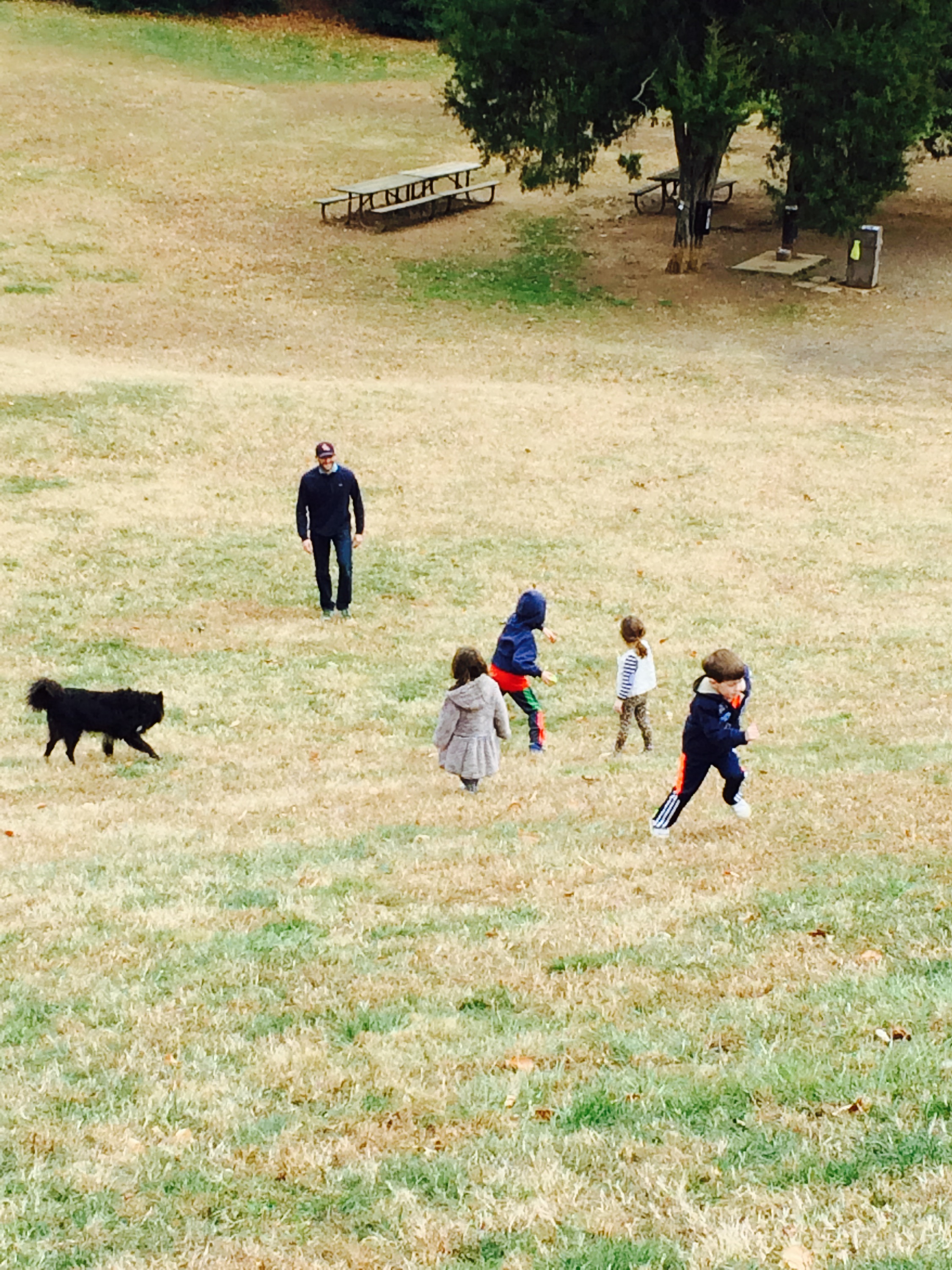 One of the things I love the most is walking outside en famille. It has everything I want-the children, MJ, walking, outside, dogs. Battery Kimble is so close so we walk over there with the kids and let them explore. We try not to direct them to much and instead to let them run and try things so they can have some independence. They were walking over logs and the creek and Charlie fell, Teddy for stuck and Scottie got her feet wet but no matter at all-they were fine and were better off for it.