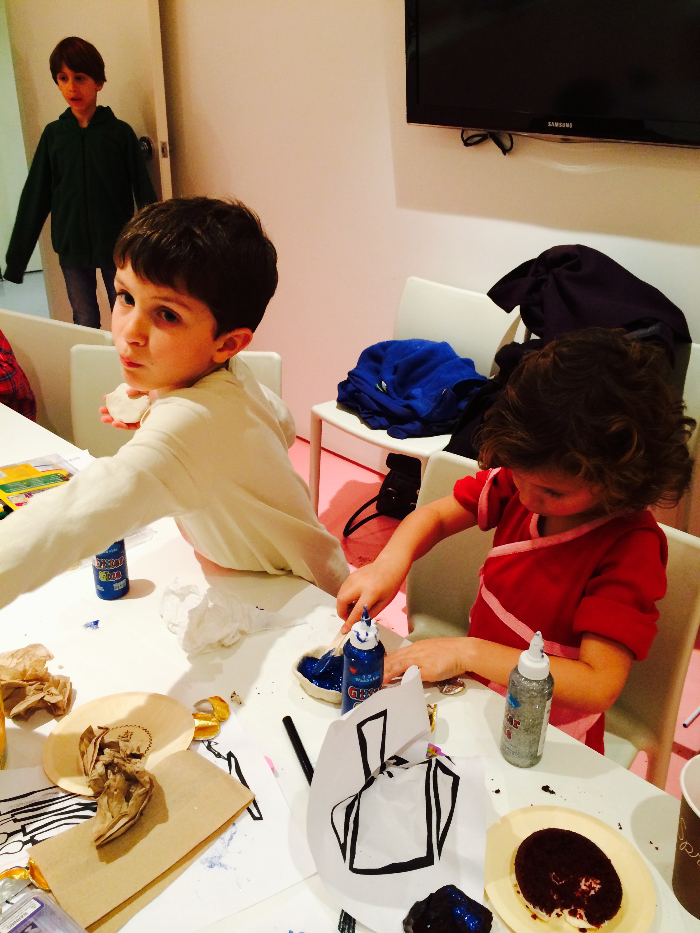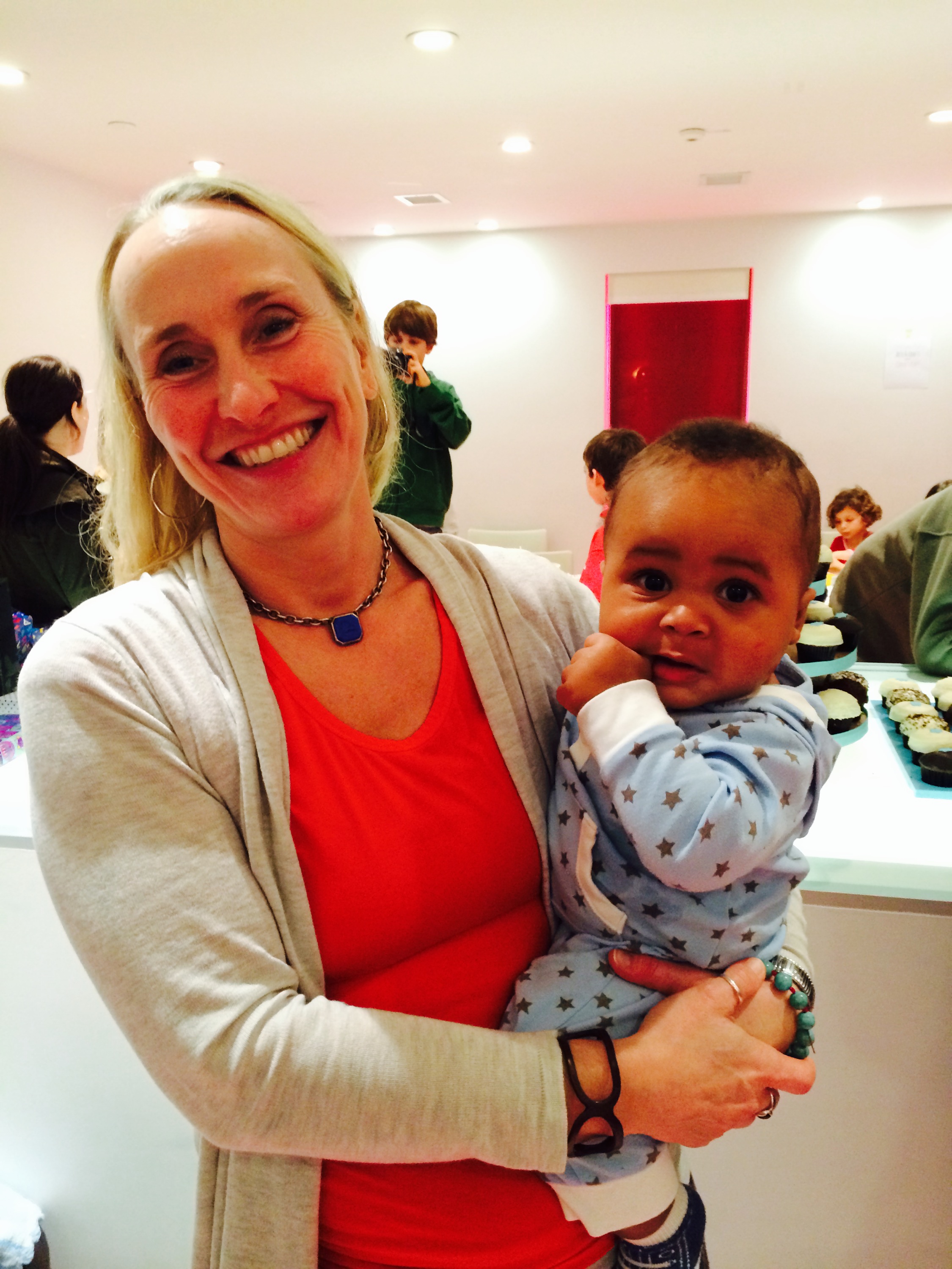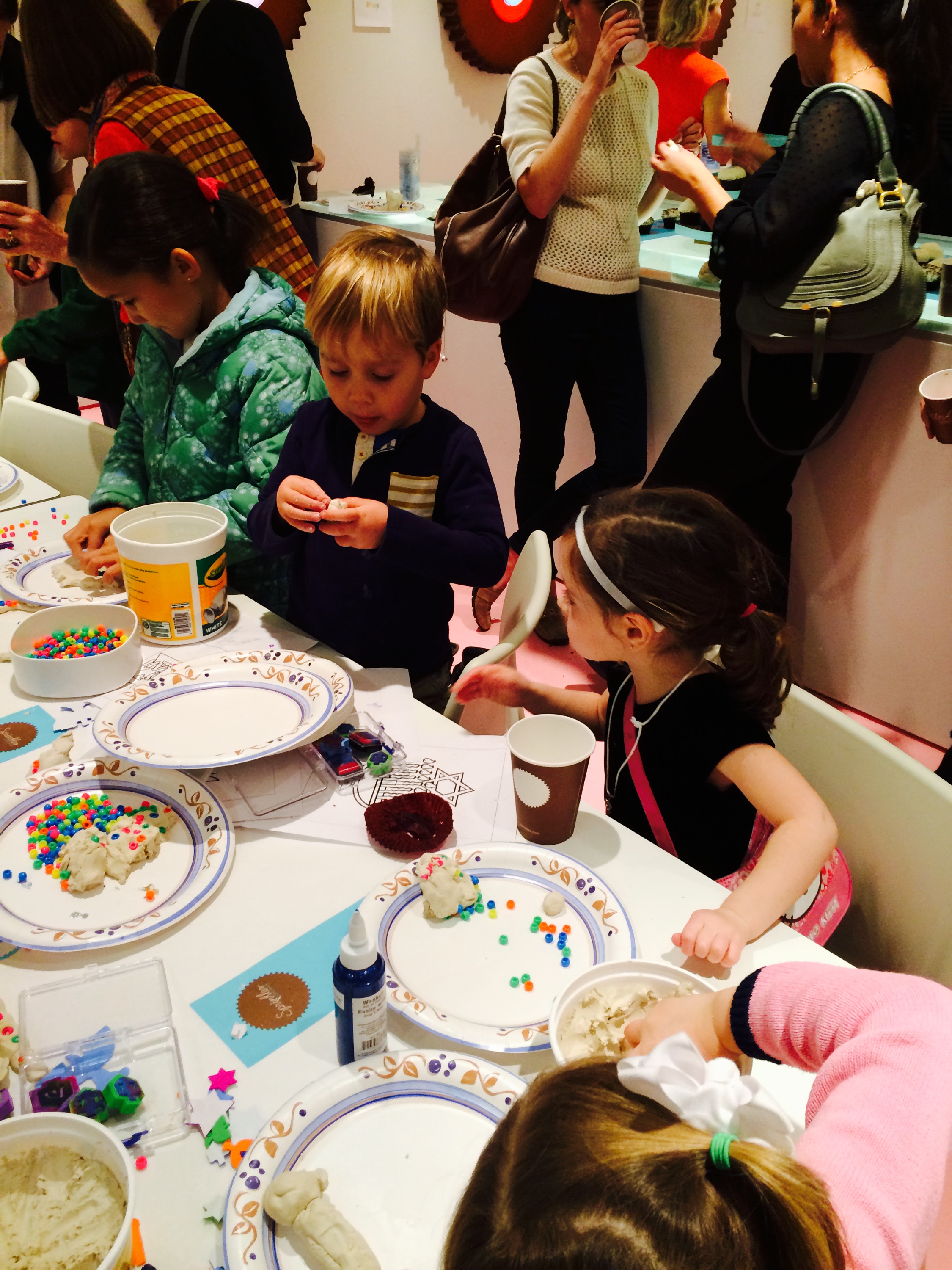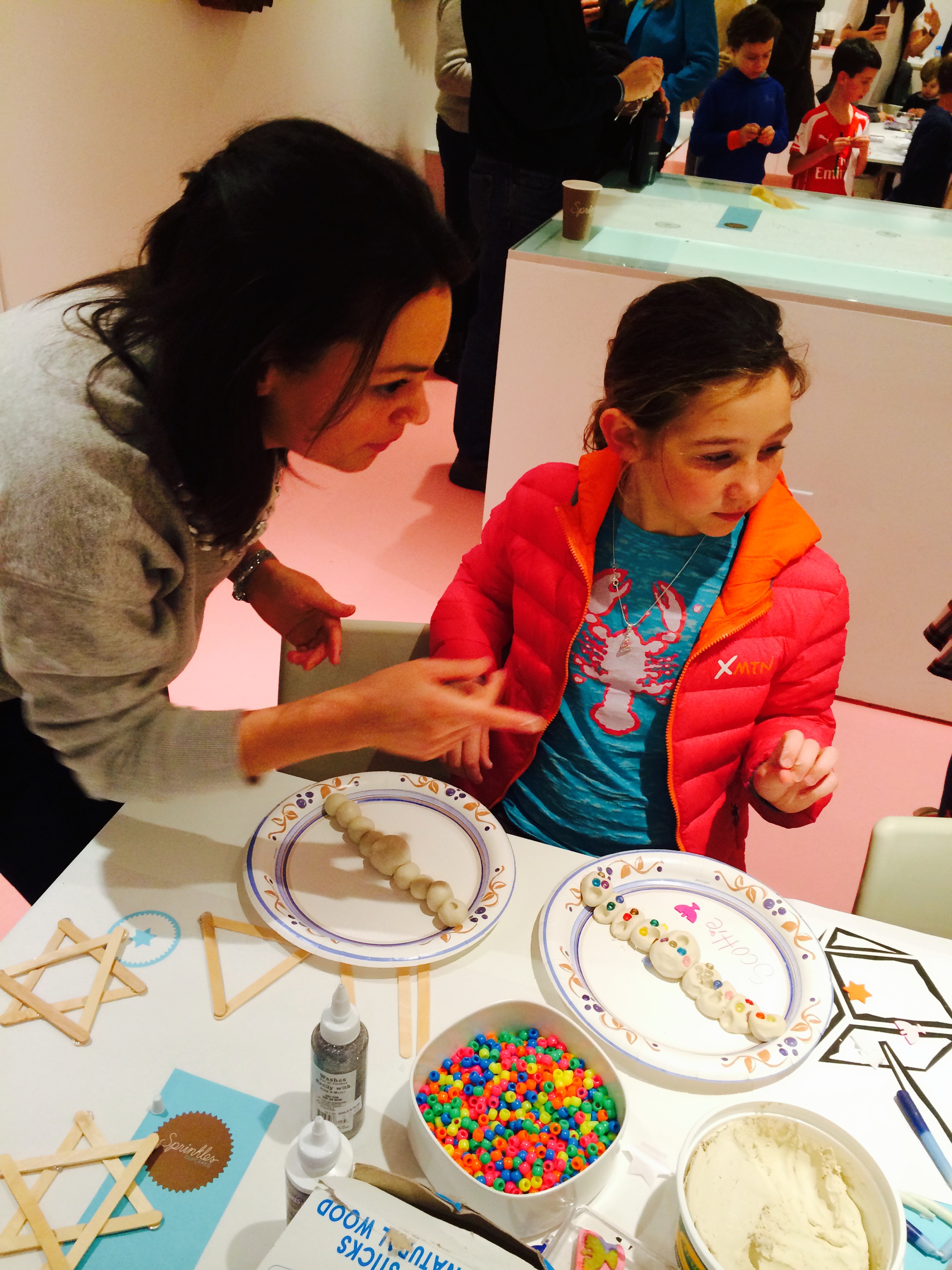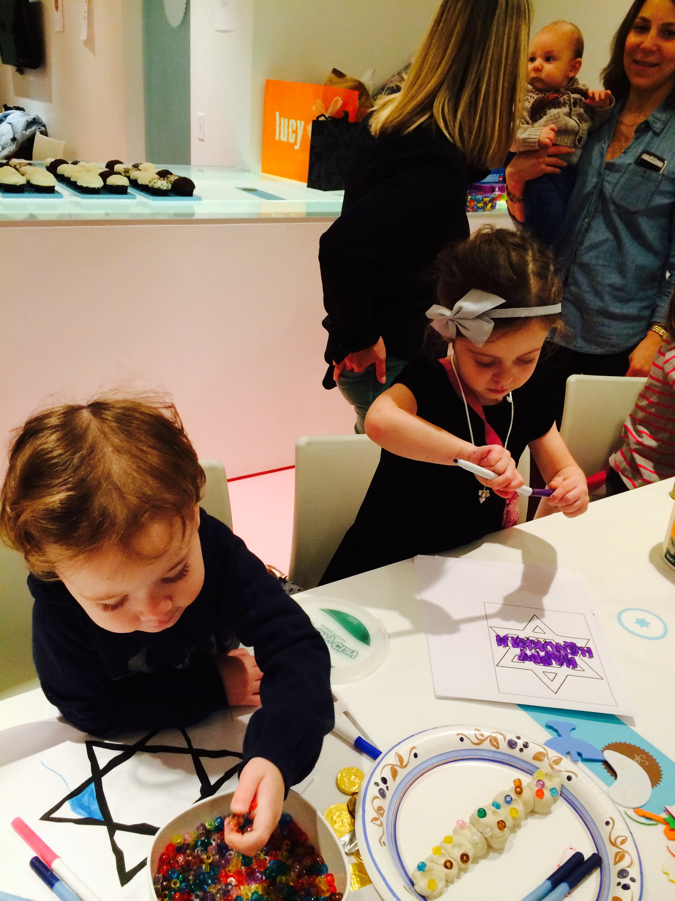 Yesterday I got to help serve pasta at the first grade holiday pasta lunch-the children are so adorable and so polite. Last night we had our annual Fifth Night of Hanukka party at sprinkles cupcakes (even though it was the second night). It was so much fun with so many friends who were so nice to come and so generous to give gifts and as always I love hostessing it with Nicole.