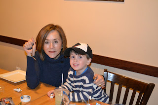 After I went to a shower teddy and I took a nice walk in the woods. I try to have one on one time with each child. It’s so hard to have enough time with each one. We went climbing around trees that has fallen in the storm. So much for the tights and skirt I was wearing.