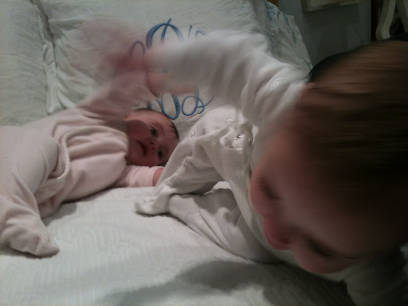 Scottie and Nell both have two little teeth on the bottom that are about to pop out. Charlie’s is really excited about it. They both really like books. (picture 1=Nell on left, Scottie on right; 2=Scottie on left, Nell on right; 3=Nell; 4=Nell; 5=Scottie; 6=Nell; 7=Scottie; 8= Scottie on left, Nell on right; 9=Nell on left, Scottie on right (I think); 10=Scottie on left, Nell on right; 11=Scottie on foreground, Nell in background;14=Nell on left, Scottie on right; 15=Nell on left, Scottie on right; 16=Nell; 17=Scottie; 18 & 19=Scottie. Or Nell.)