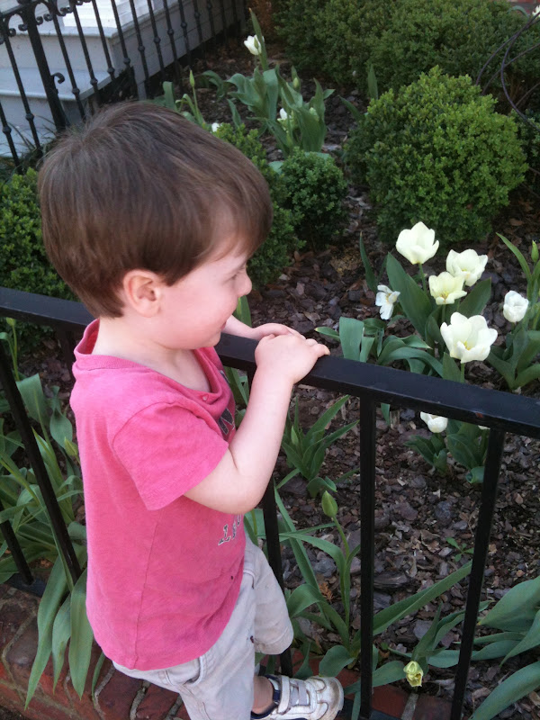 I walked Teddy around the neighborhood and he stopped at every other house to admire the flowers and would sniff and then point out that the buds and small flowers were “baby flowers” and the bigger, blossomed ones were “boy” “mommy” or “daddy” flowers.