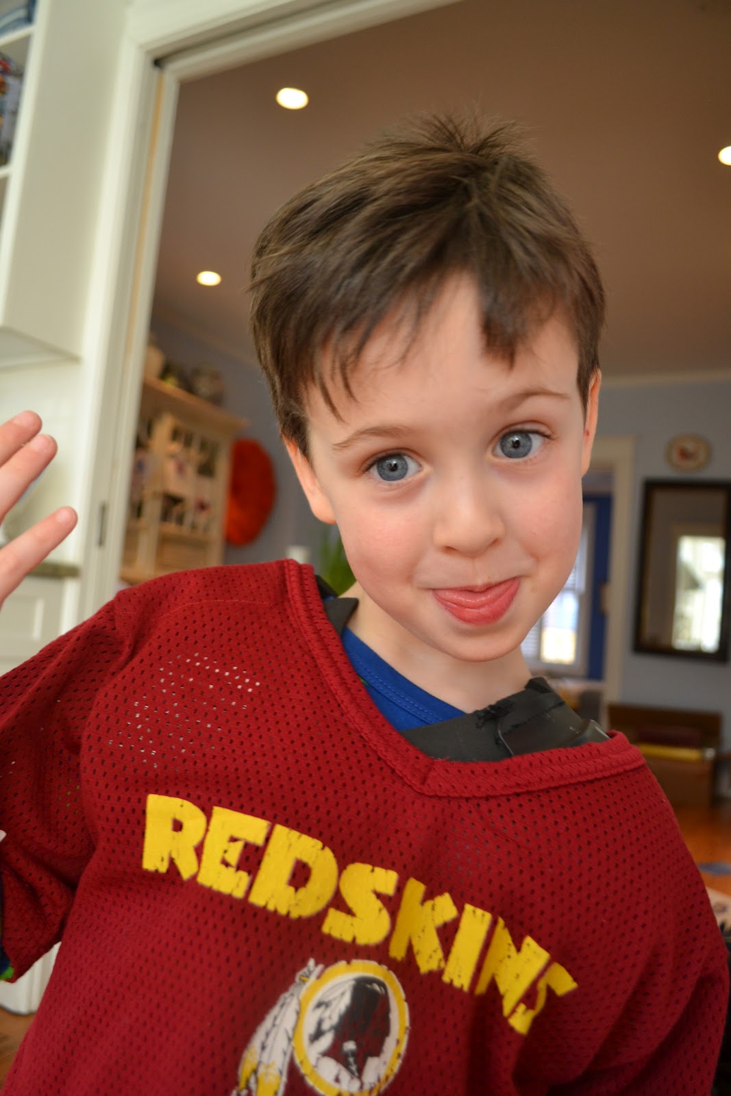 Teddy has been asking me to turn on the hairdryer and blow the hair on his head, not that it’s wet, just because he likes it. He says “This silly” He needs his haircut because he looks like Brad Pitt in Moneyball.