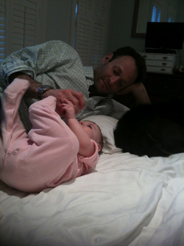Nell totally sits up and crawled 4 beats? movements? the other day. She also says dadadadada. Go Nell.