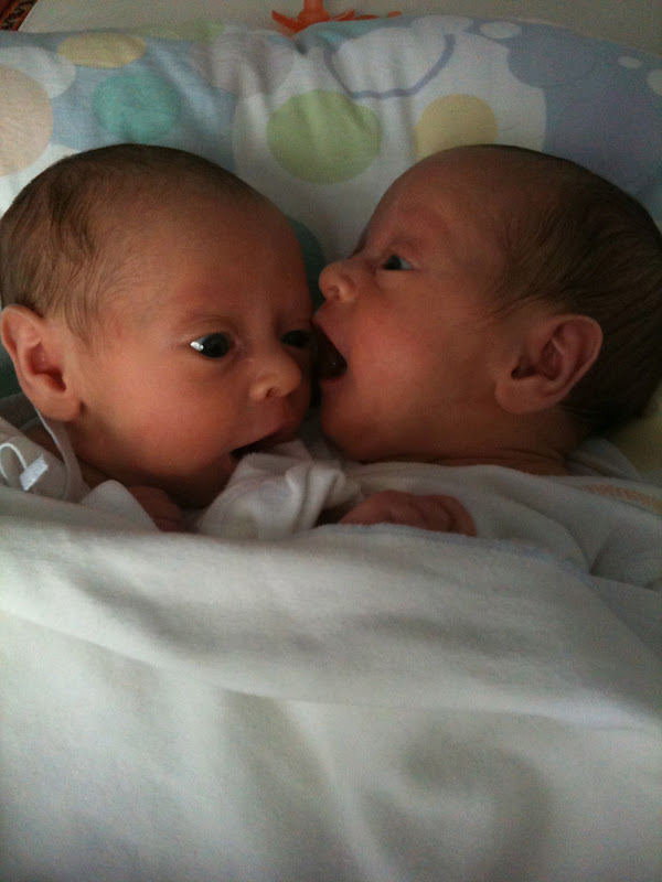 Scottie and Nell are one month old as of yesterday. They are growing up too fast. I keep thinking of everything about the day they were born and being in the hospital with them. It was all so nice…Teddy and Charlie coming to visit (Charlie in his seersucker jacket), taking two days to name them, I could hold the babies all day, the nurses were so nice and each time I go to the hospital to have a baby I want to become a nurse, I ate almost only watered down apple juice and graham crackers for days, MJ would hang out in the room with me making it more fun, we watched fire works from the window on the 4th of July, and Hon John brought me a gardenia that made the room smell so good.